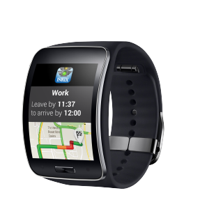 - Samsung Gear S Smartwatch and INRIX XD Traffic app integration. INRIX XD Traffic app users now can receive departure alerts for saved places in the app that tells them the best time to leave and expected travel time in traffic to their destination.